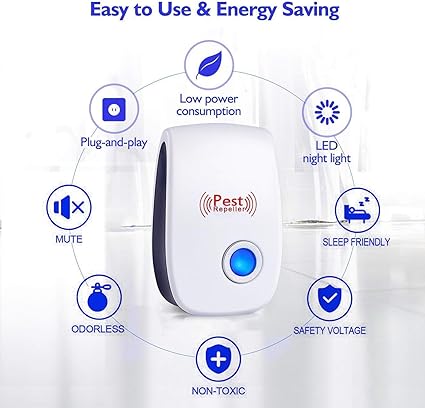 • [QUIET PEST CONTROL]: Our Ultrasonic Pest Repeller emits high-frequency sound waves that are too high for humans to hear. These waves are designed to distract, annoy, and deter common household pests like roaches, spiders, mosquitoes, ants, and rodents. Our intelligent multi-frequency ultrasonic conversion system makes it impossible for pests to hide.